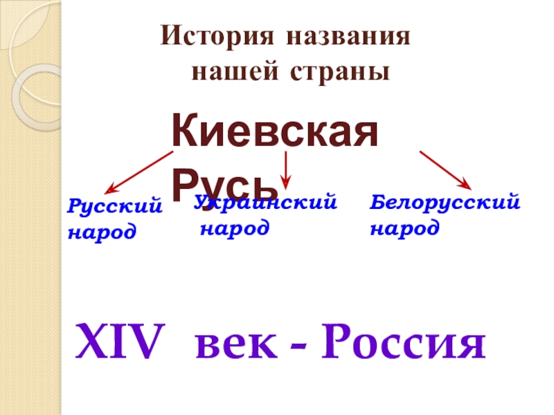 История названия  нашей страныКиевская РусьРусский народУкраинский народБелорусский народXIV век - Россия