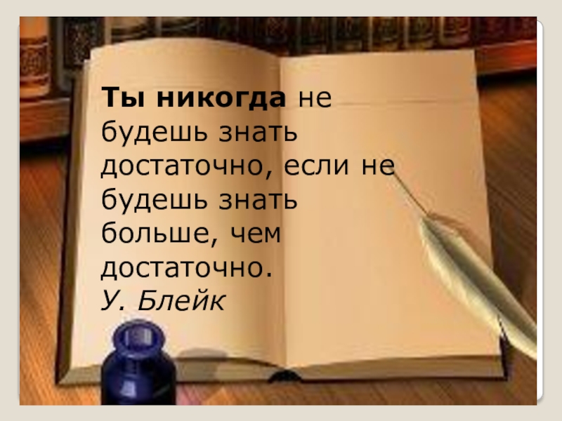 Ты никогда не будешь знать достаточно, если не будешь знать больше, чем достаточно.У. Блейк
