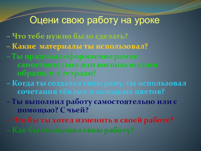 Оцени свою работу на уроке