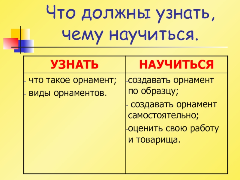 Что должны узнать, чему научиться.