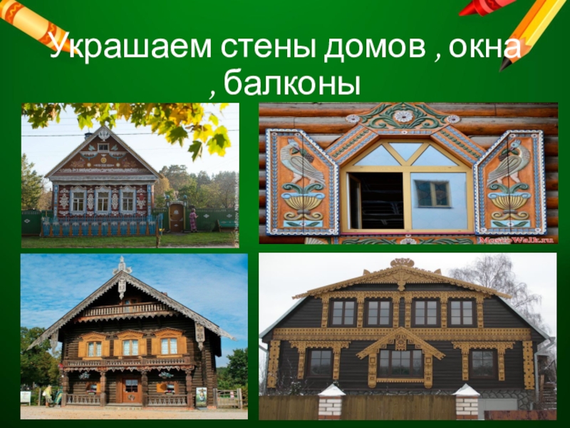 Слайд 3Украшаем стены домов , окна , балконы