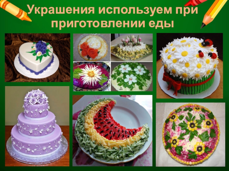 Слайд 5Украшения используем при приготовлении еды