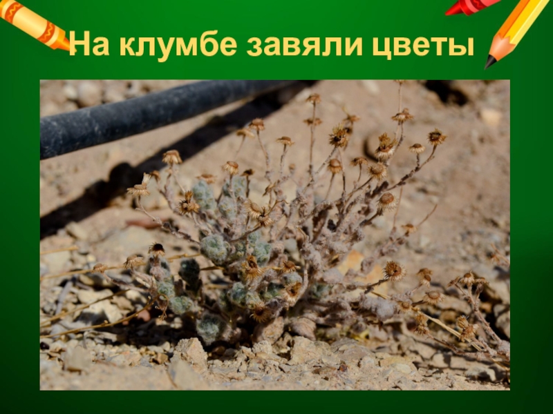Слайд 12На клумбе завяли цветы