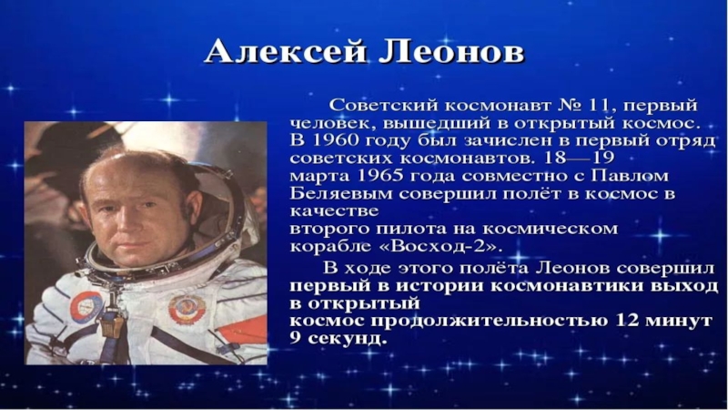 Слайд 7Автор - Космонавт Алексей Леонов