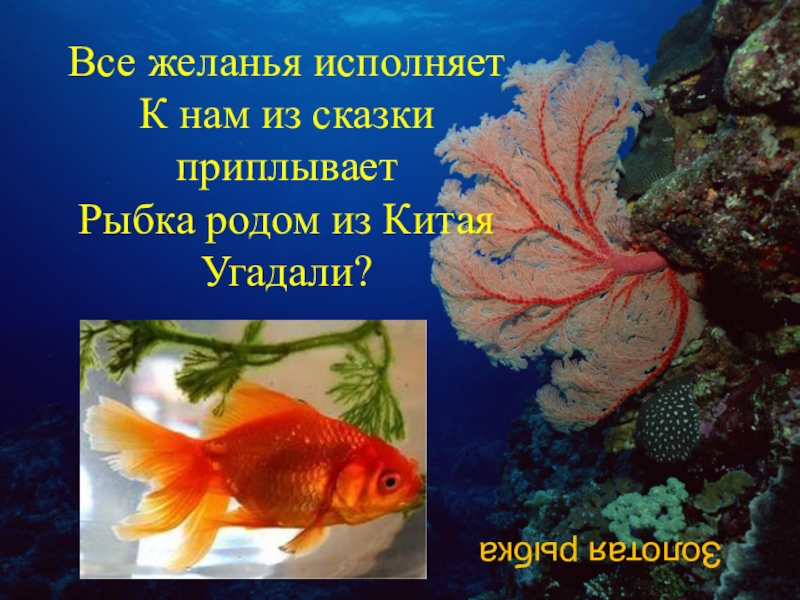 Слайд 7Все желанья исполняет К нам из сказки приплывает Рыбка родом из Китая Угадали?