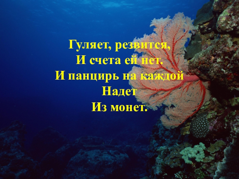 Слайд 2Гуляет, резвится, И счета ей нет. И панцирь на каждой Надет Из монет.