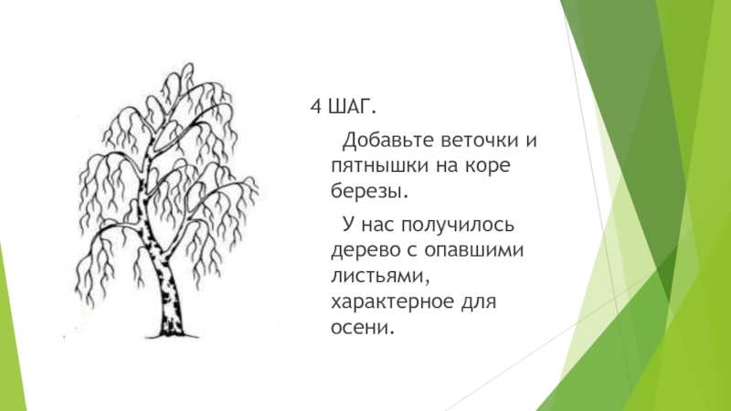 4 ШАГ.   Добавьте веточки и пятнышки на коре березы.   У нас получилось дерево