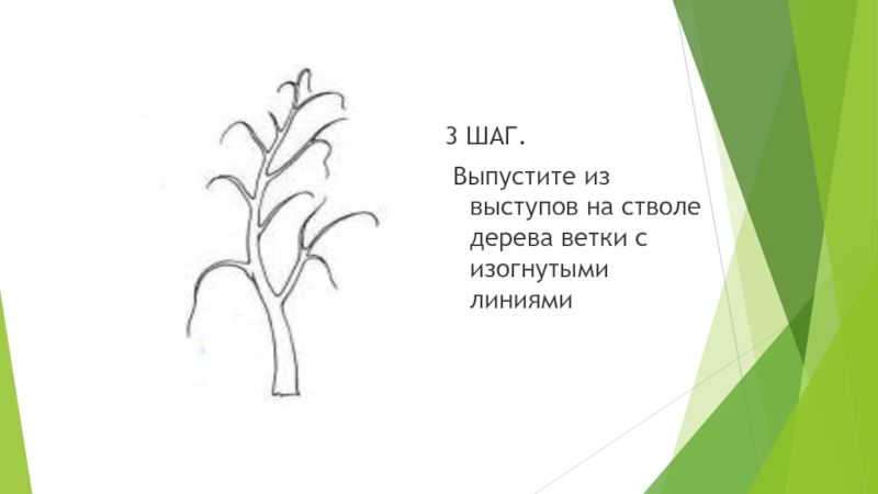 3 ШАГ. Выпустите из выступов на стволе дерева ветки с изогнутыми линиями