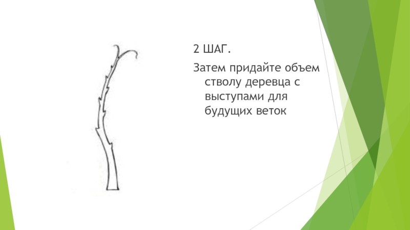 2 ШАГ. Затем придайте объем стволу деревца с выступами для будущих веток