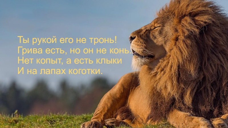 Ты рукой его не тронь! Грива есть, но он не конь. Нет копыт, а есть клыки И