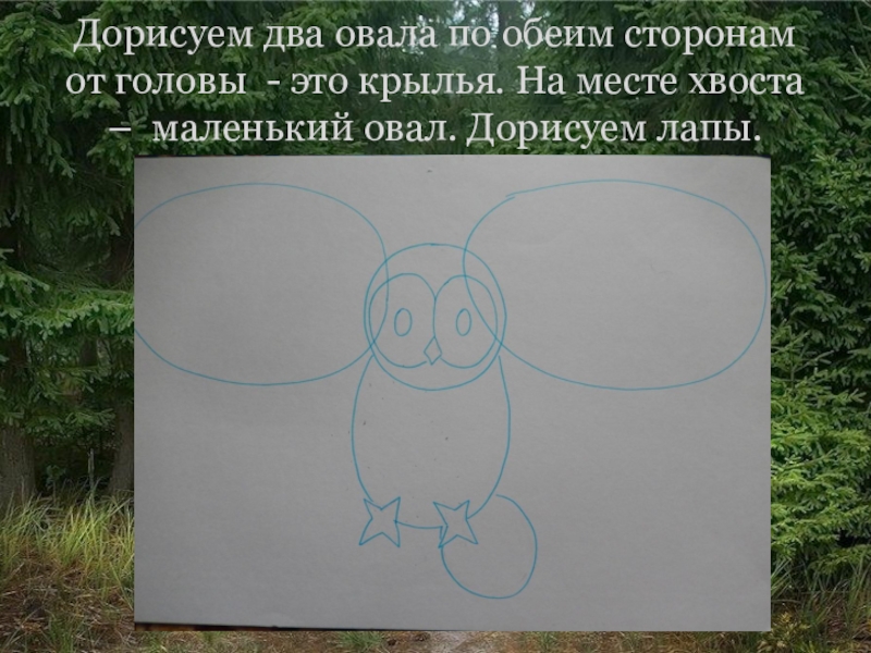 Слайд 8Дорисуем два овала по обеим сторонам от головы - это крылья.