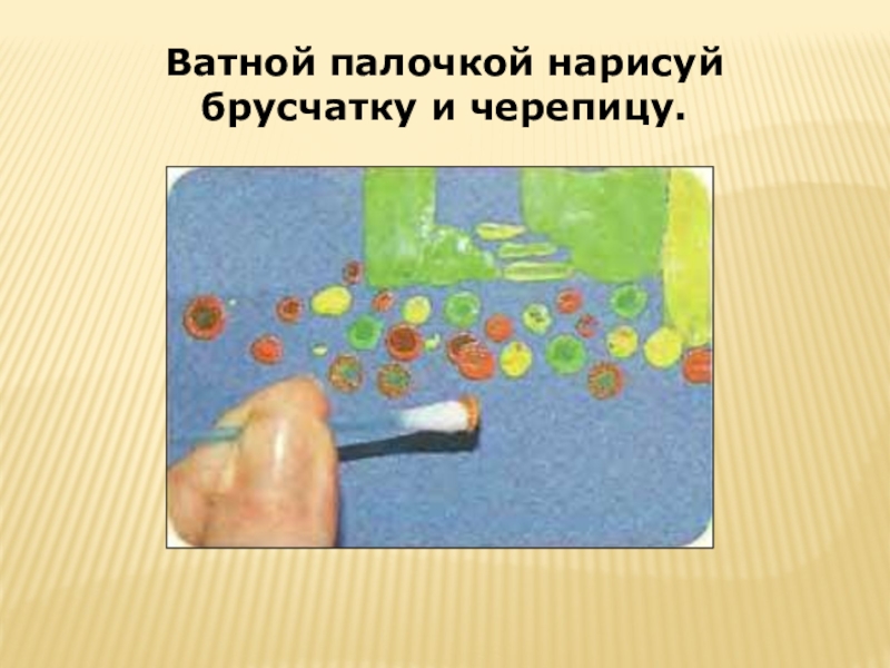 Ватной палочкой нарисуй брусчатку и черепицу.