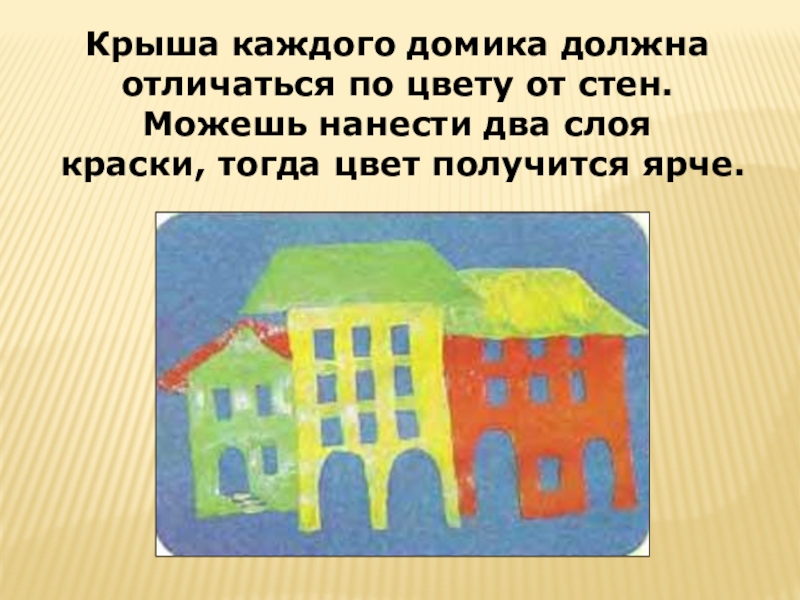 Крыша каждого домика должна отличаться по цвету от стен. Можешь нанести два слоя краски, тогда цвет получится
