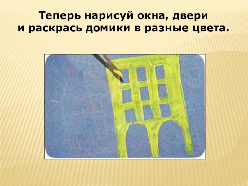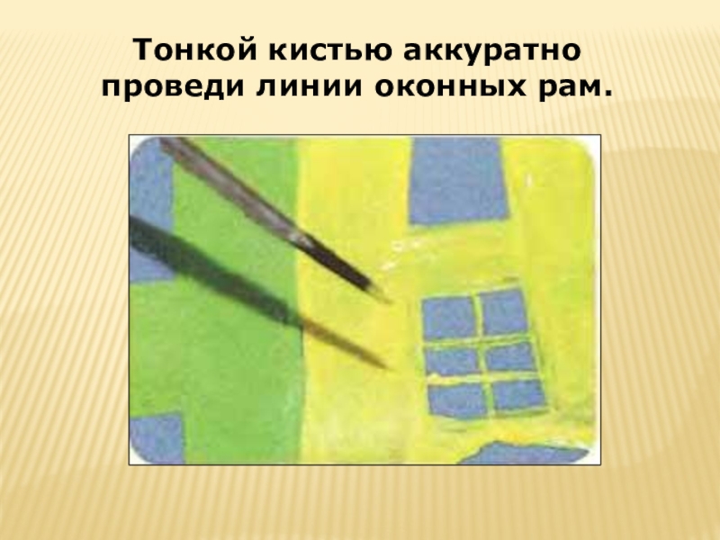 Слайд 8Тонкой кистью аккуратно проведи линии оконных рам.