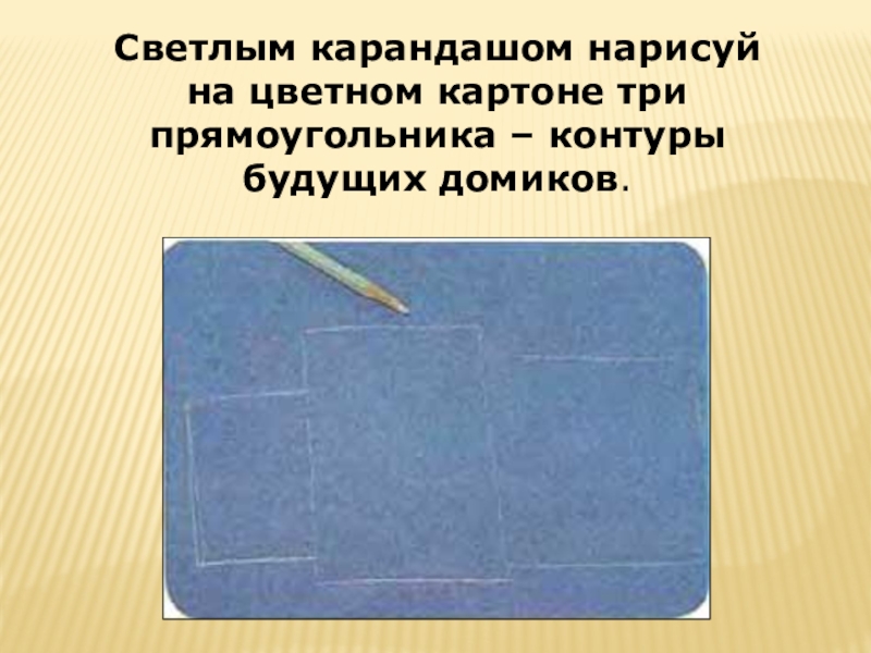 Светлым карандашом нарисуй на цветном картоне три прямоугольника – контуры будущих домиков.