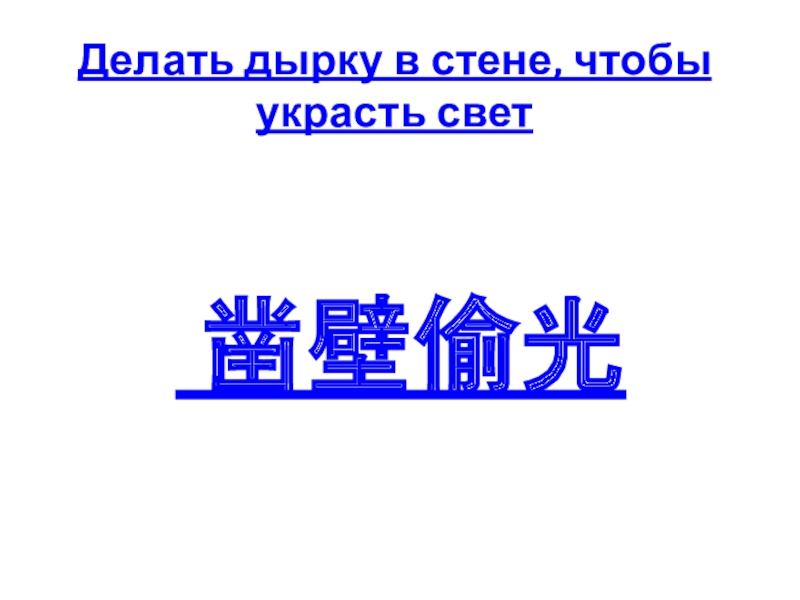 Слайд 6Делать дырку в стене, чтобы украсть свет