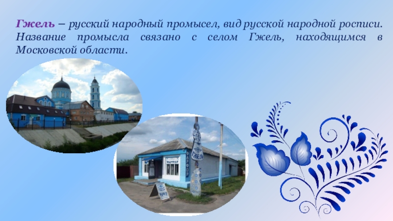 Слайд 2Гжель – русский народный промысел, вид русской народной росписи. Название промысла
