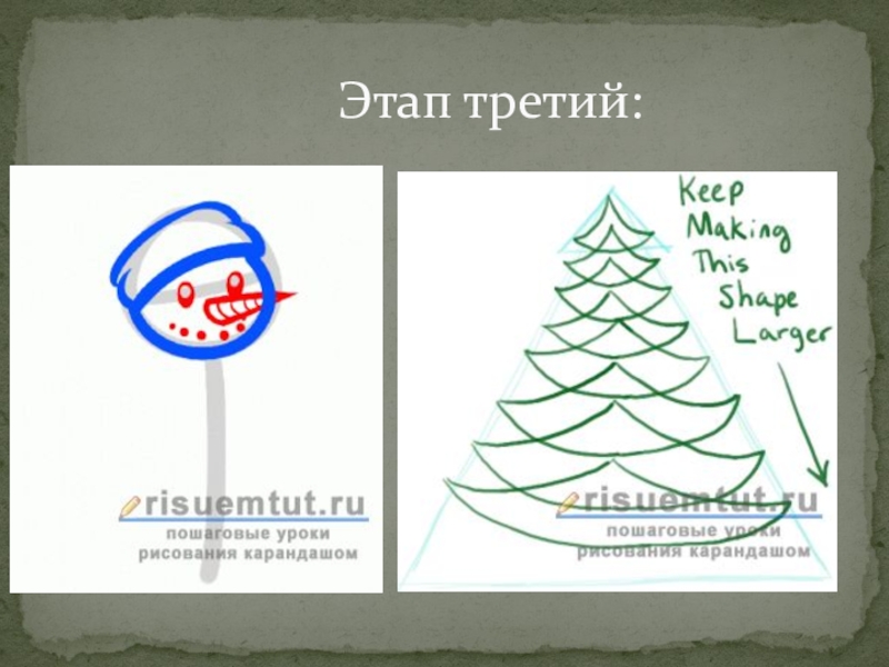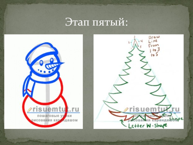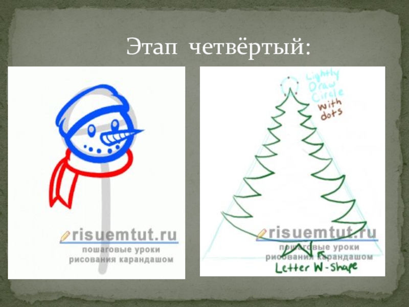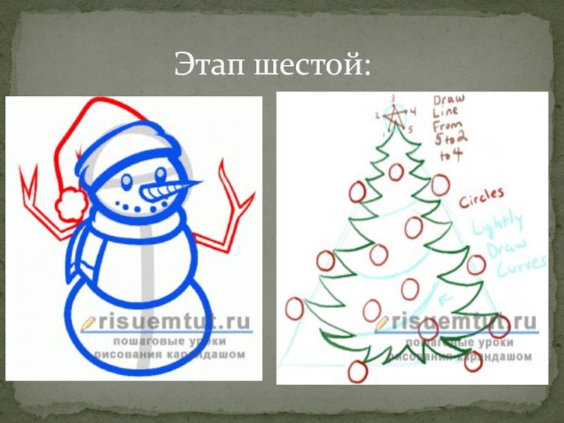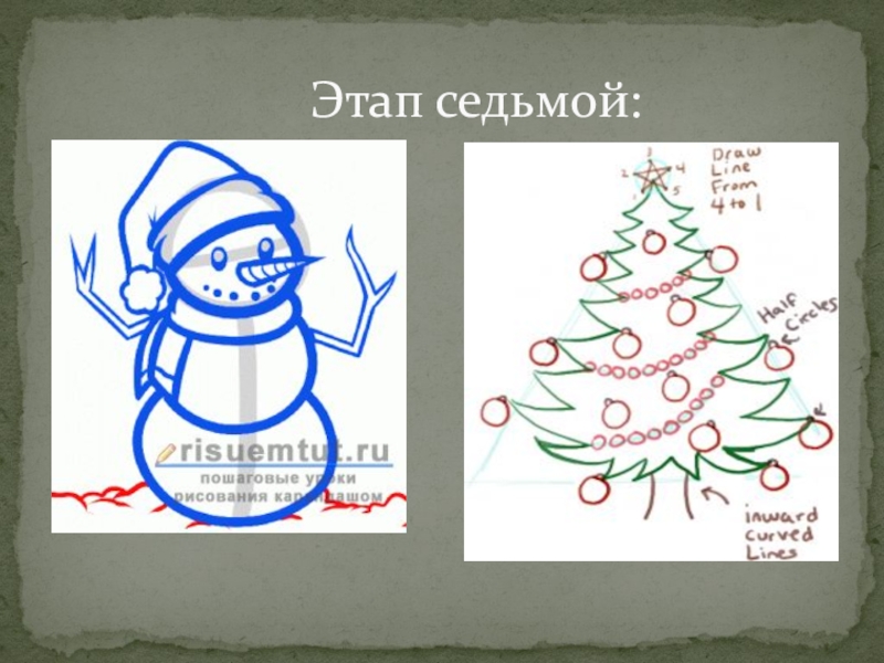 Рисуем поэтапно СнеговикаЁлочку      Этап первый