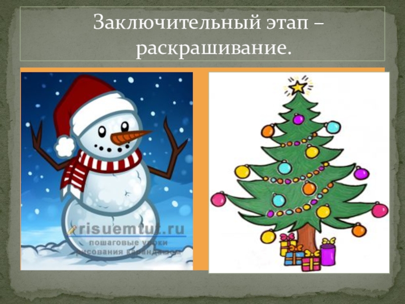 Презентация, доклад к уроку изобразительного искусства на тему Рисование снеговика и ёлочки(2-4 класс)