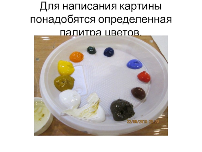 Слайд 2Для написания картины понадобятся определенная палитра цветов.