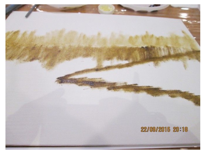 Сделаем набросок светло-коричневой краской.