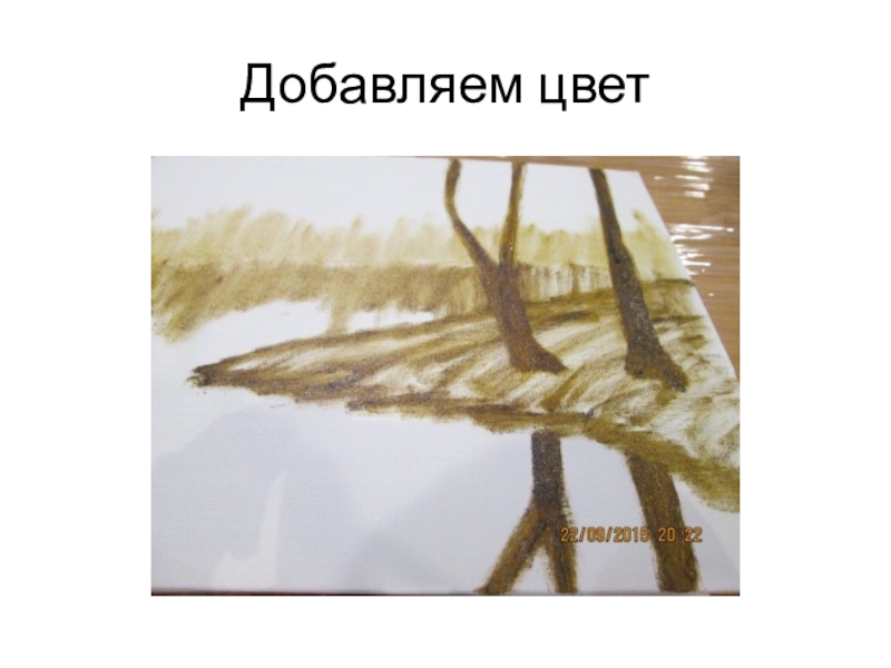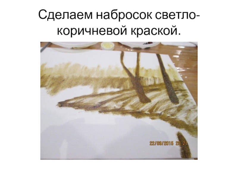 Слайд 3Сделаем набросок светло-коричневой краской.