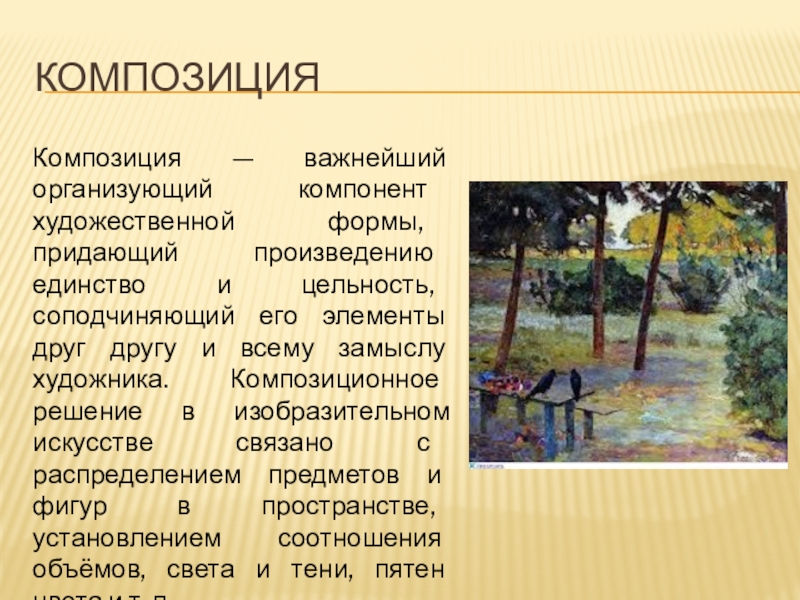 Композиция — важнейший организующий компонент художественной формы, придающий произведению единство и