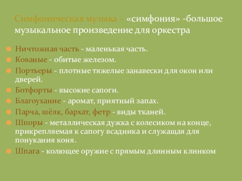 Симфоническая музыка – «симфония» -большое музыкальное произведение для оркестра