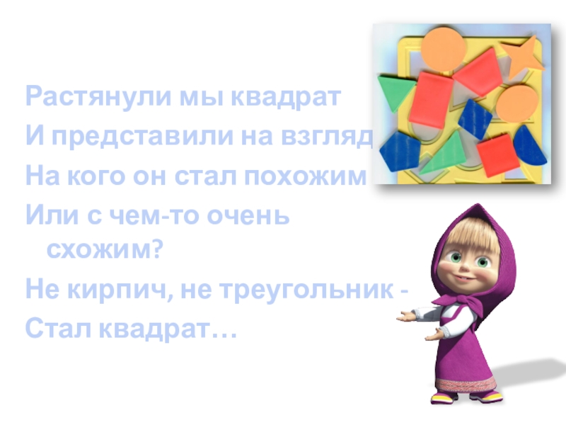 Растянули мы квадратИ представили на взгляд, На кого он стал похожим Или с чем-то очень схожим?Не кирпич,