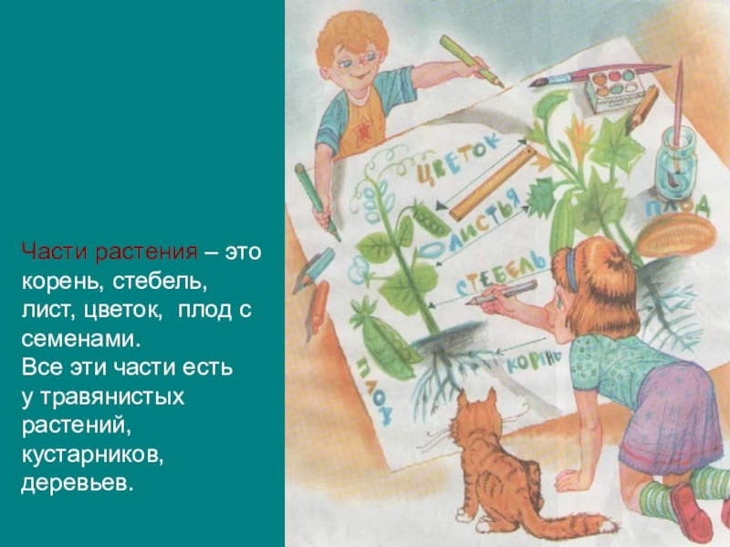 Слайд 5Части растения – это корень, стебель, лист, цветок, плод с семенами.
