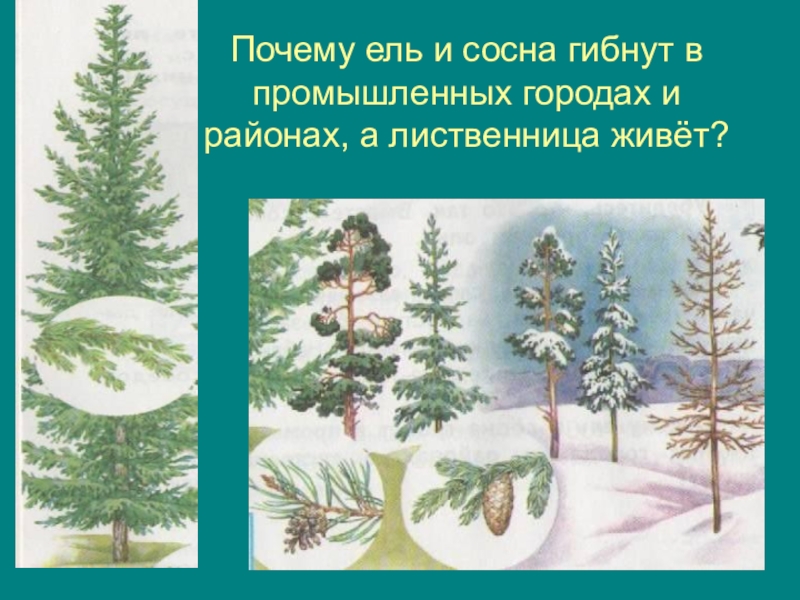 Почему ель и сосна гибнут в промышленных городах и районах, а лиственница живёт?