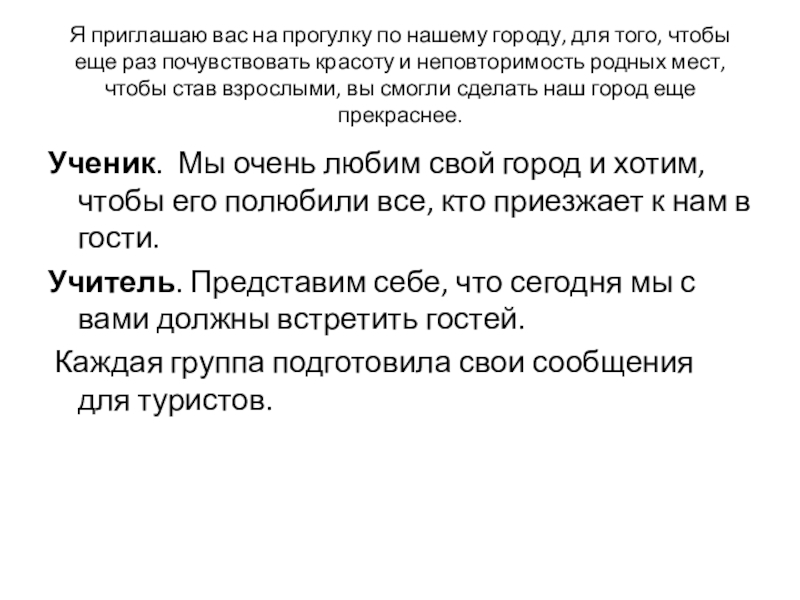 Ученик. Мы очень любим свой город и хотим, чтобы его полюбили все, кто приезжает к нам в гости.