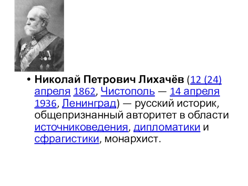 Николай Петрович Лихачёв (12 (24) апреля 1862, Чистополь — 14 апреля