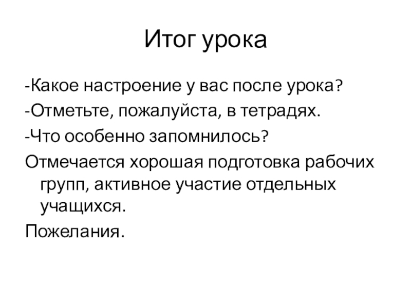 -Какое настроение у вас после урока?