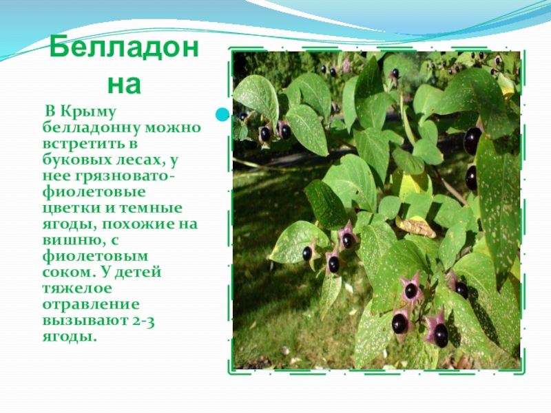 Презентация, доклад к уроку краеведения Ядовитые растения Крыма (4 класс)