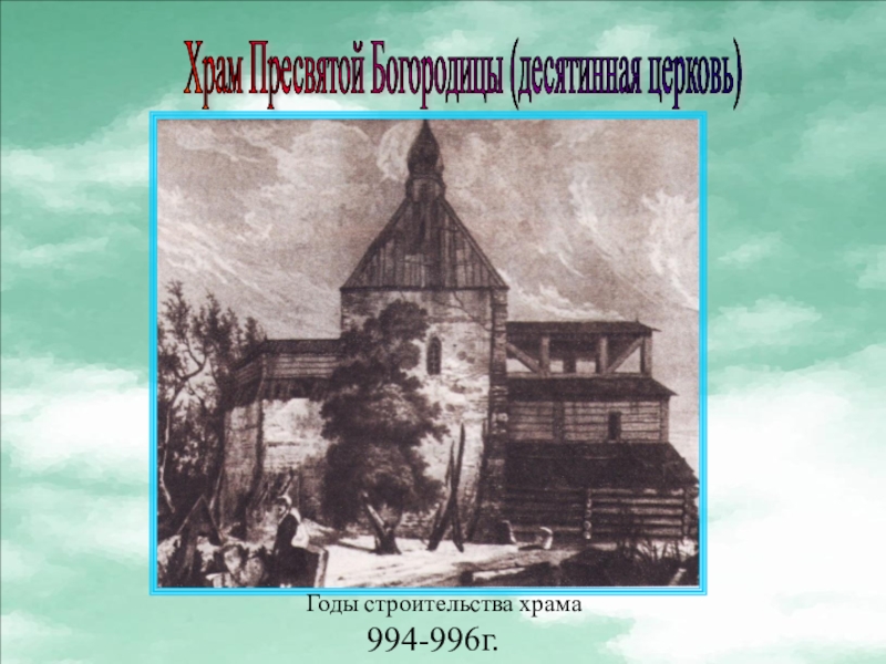 Храм Пресвятой Богородицы (десятинная церковь) Годы строительства храма    994-996г.