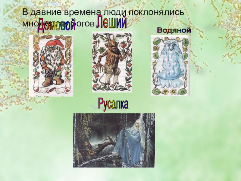 В давние времена люди поклонялись множествам боговВ давние времена люди поклонялись множеству богов… Домовой Леший Водяной Русалка