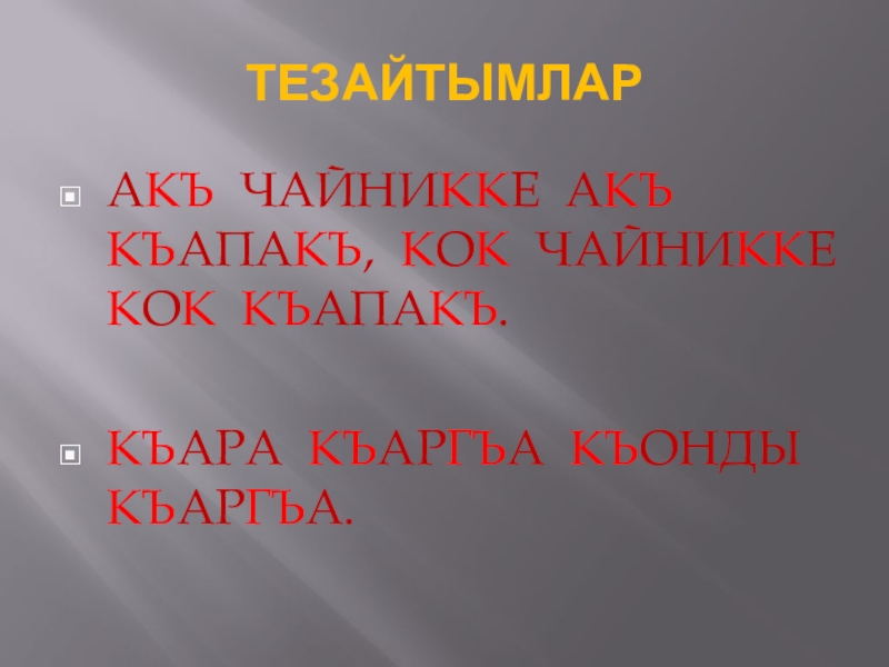 Слайд 9КЪАЗ АЙТА: « ГЪА-ГЪА-ГЪА», КЪАЗ БАЛАСЫ: «ГА-ГА-ГА»
