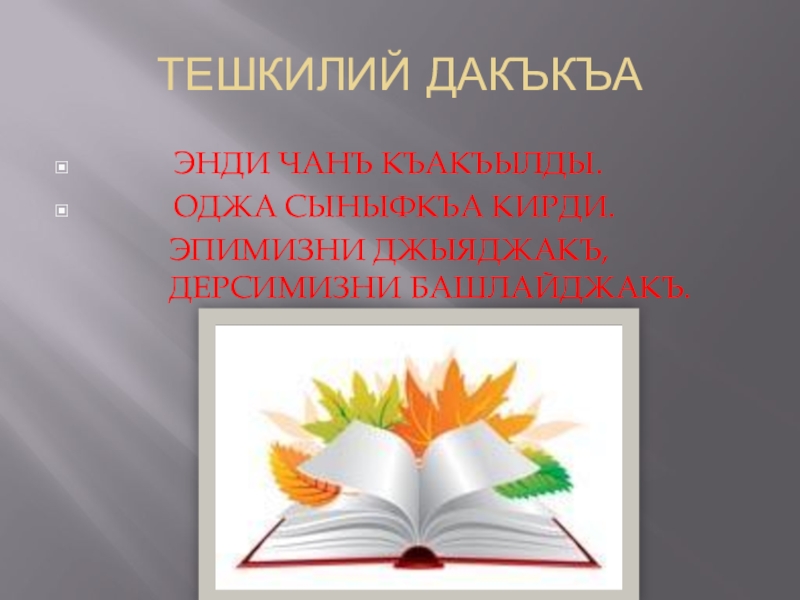 Слайд 3ТЕШКИЛИЙ ДАКЪКЪА