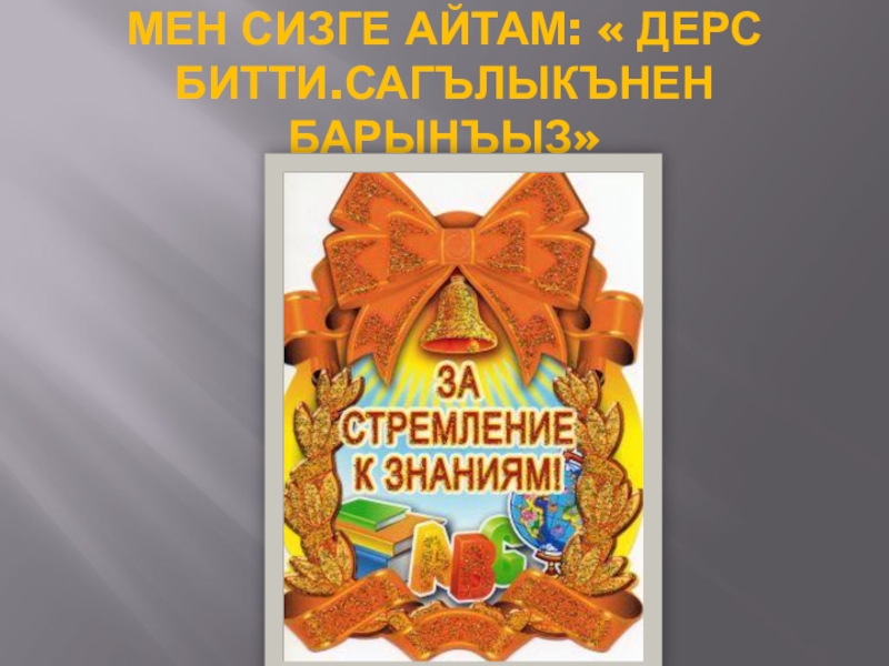Слайд 20МЕН СИЗГЕ АЙТАМ: « ДЕРС БИТТИ.САГЪЛЫКЪНЕН БАРЫНЪЫЗ»