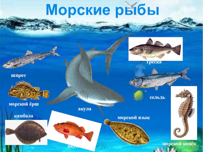 сельдьморской конёкшпроткамбаламорской языкморской ёрштрескаморской окуньМорские рыбыакула
