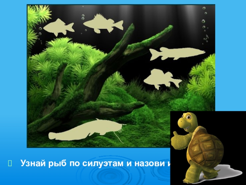 Слайд 10 Узнай рыб по силуэтам и назови их.