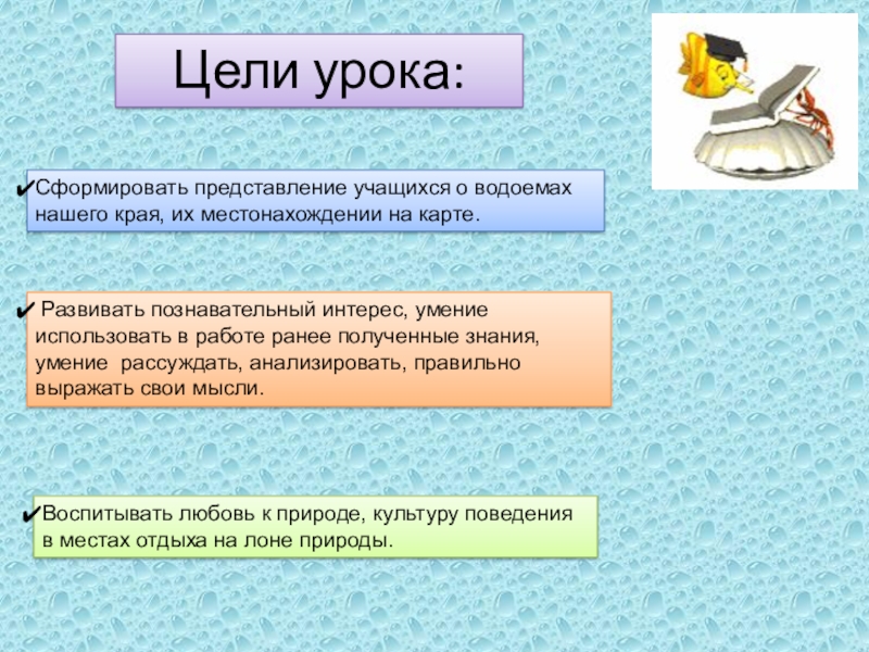 Воспитывать любовь к природе, культуру поведения в местах отдыха на лоне природы.