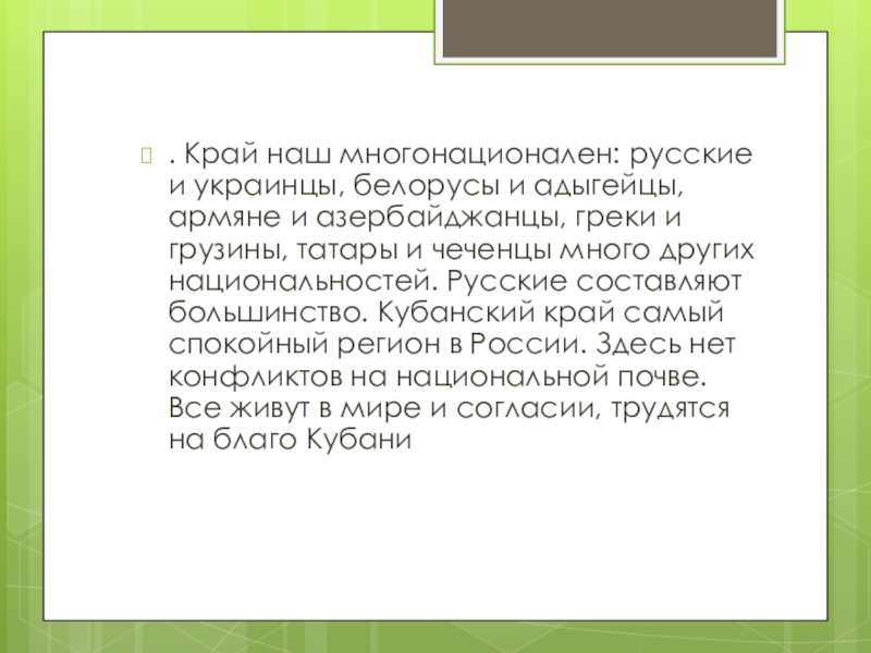 Обучающая: познакомить учащихся с многонациональным составом Кубани.