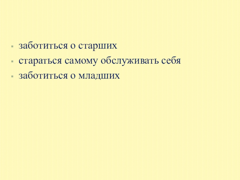 заботиться о старшихстараться самому обслуживать себязаботиться о младших