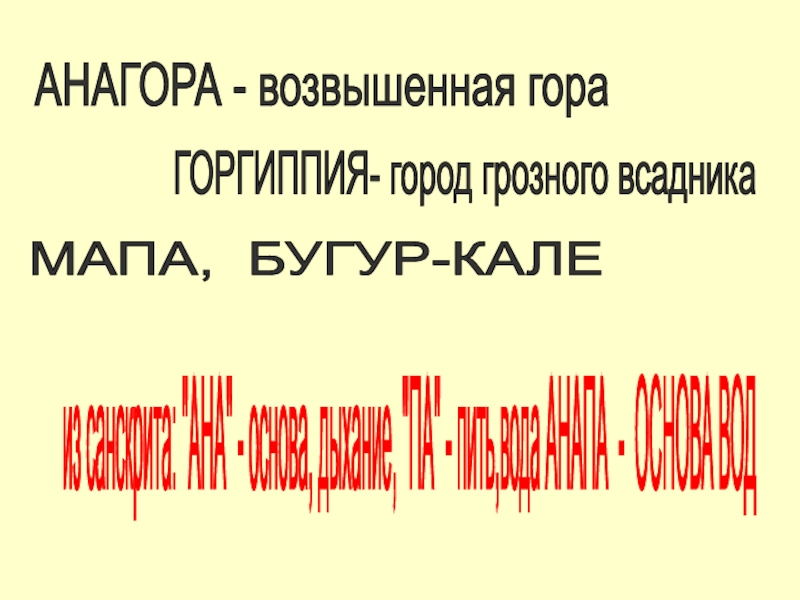 АНАГОРА - возвышенная гора ГОРГИППИЯ- город грозного всадника МАПА, БУГУР-КАЛЕ из санскрита: