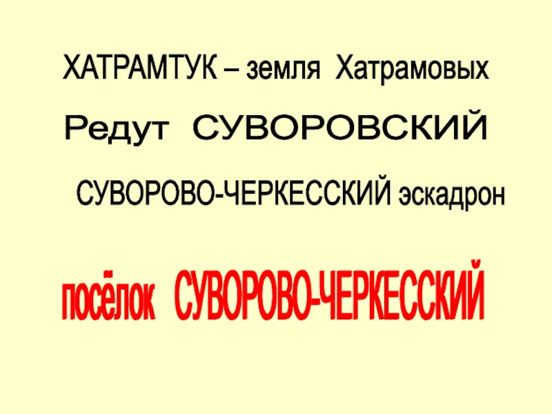 Редут СУВОРОВСКИЙ ХАТРАМТУК – земля Хатрамовых СУВОРОВО-ЧЕРКЕССКИЙ эскадрон посёлок  СУВОРОВО-ЧЕРКЕССКИЙ  посёлок  СУВОРОВО-ЧЕРКЕССКИЙ