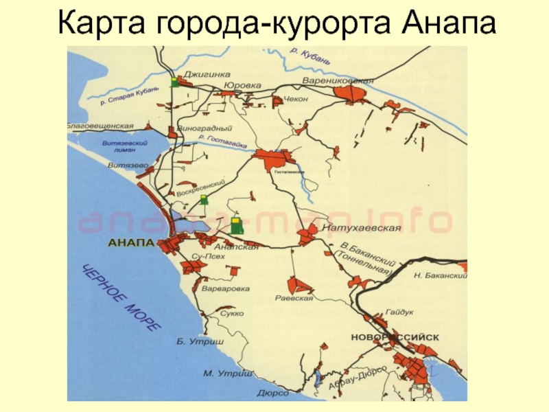 Слайд 5Карта города-курорта Анапа