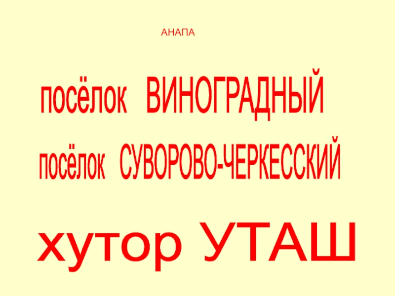 АНАПА посёлок  ВИНОГРАДНЫЙ посёлок  СУВОРОВО-ЧЕРКЕССКИЙ хутор УТАШ