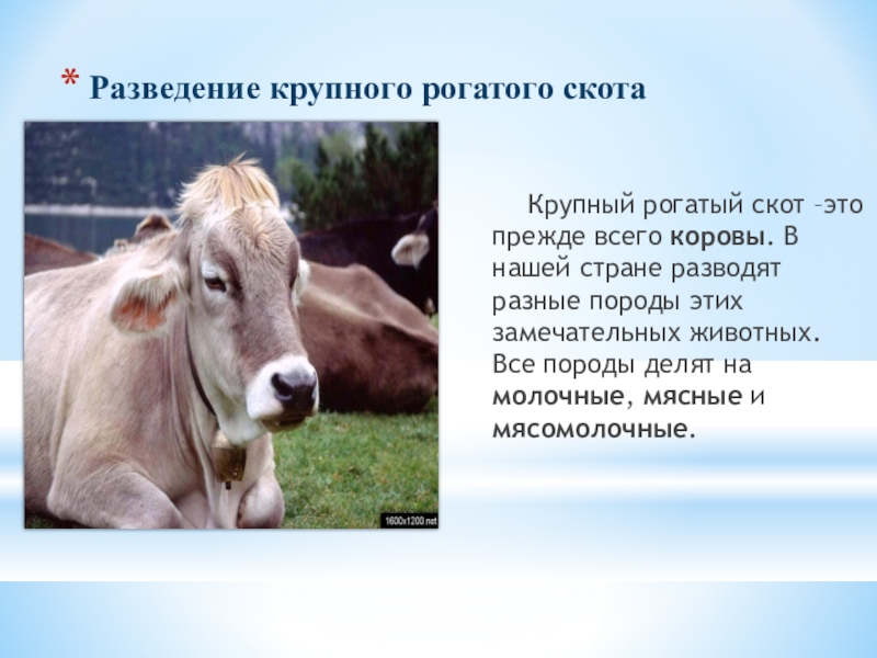нашей стране разводят разные породы этих замечательных животных. Все породы делят на молочные, мясные и мясомолочные.